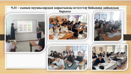 Ағымдағы жылдың қыркүйек айында 9, 11- сынып оқушылары бойынша қорытынды аттесттауға дайындық жүргізілді